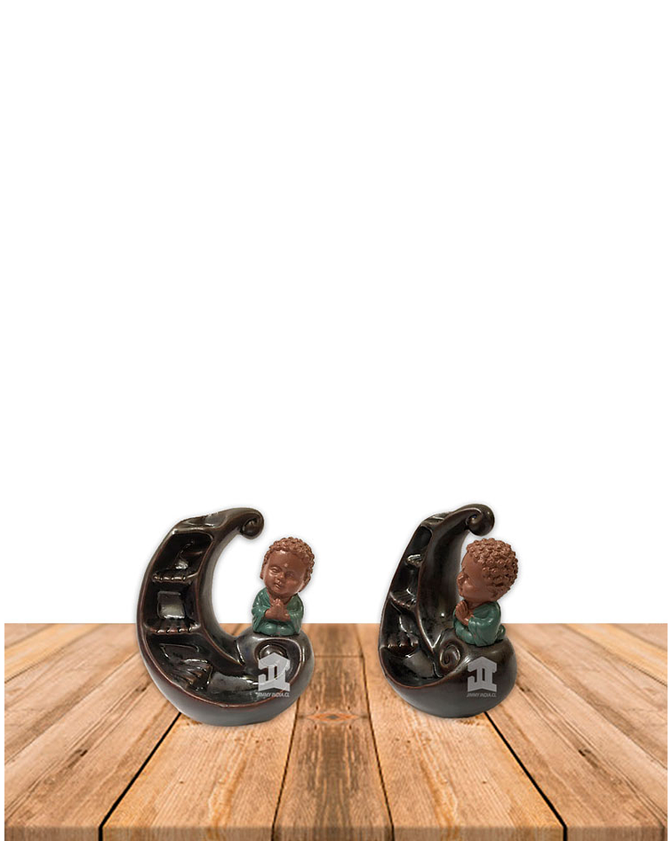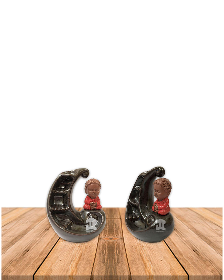 Cascadas de Humo Buda niño en luna , ideales para decorar su hogar le dan un toque especial creando un ambiente armónico y energético.