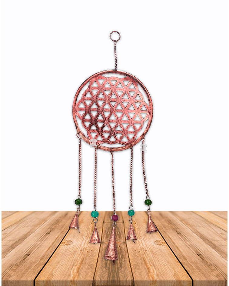 Hermosa Campana de Viento con mándala en un solo colgante . Disfruta el sonido relajante de las campana mientras mejoras la energías en tu hogar.