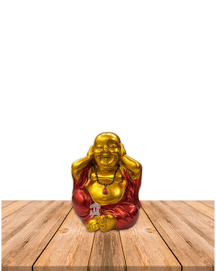 Set de Figura Buda Sonriente Dorado, Poliresina 4", diseño poliresina con rasgos y detalles marcados de Buda en dos colores.