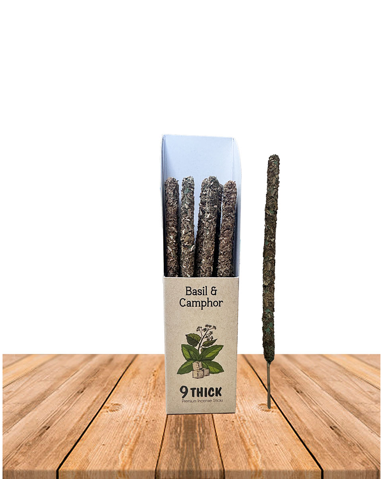 Experimente la refinada mezcla de albahaca y alcanfor. Incienso en barra, conocido por sus notas refrescantes. Esta mezcla promueve la claridad y la relajación. Transforme su espacio en un remanso de paz y consciencia plena.
