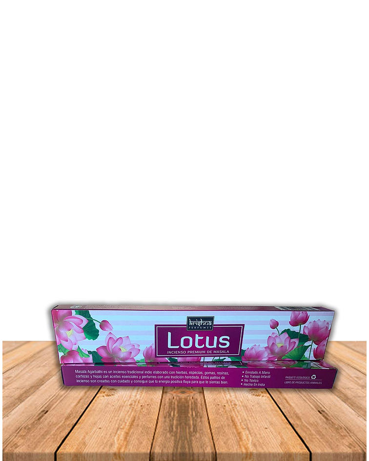 Incienso Krishna Premium Lotus hecho con hierbas, aceites esenciales, resinas para darte una experiencia saludable y segura.