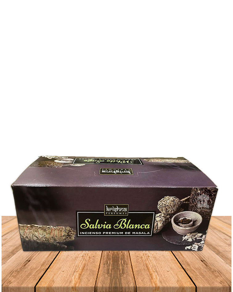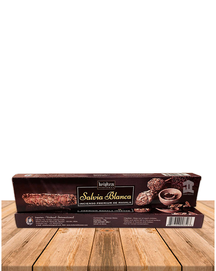 Incienso Krishna Premium Salvia Blanca hecho con hierbas ,aceites esenciales, resinas para darte una experiencia saludable y segura.