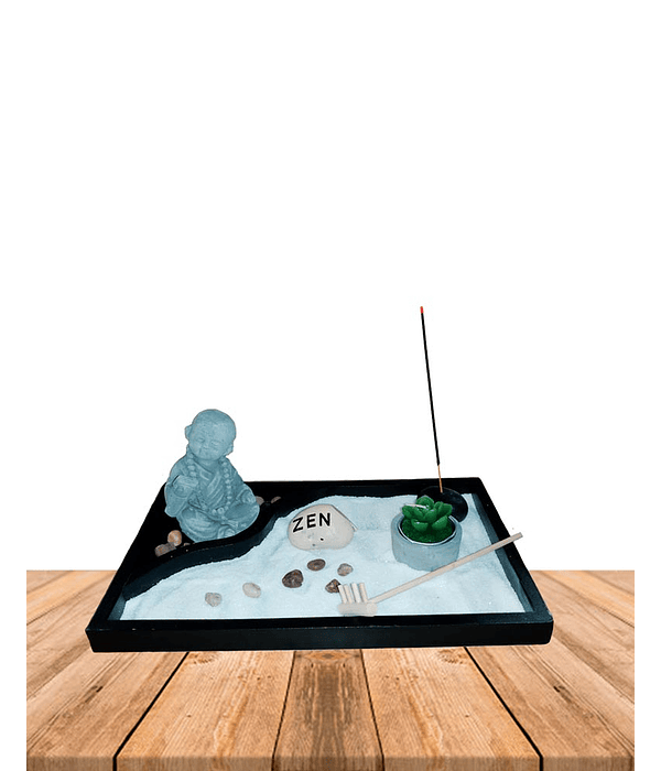 Jardin Zen Buda de cemento pequeño. Incluye arena, piedras, figuras y vela, ideal para adornar tus lugares favoritos.