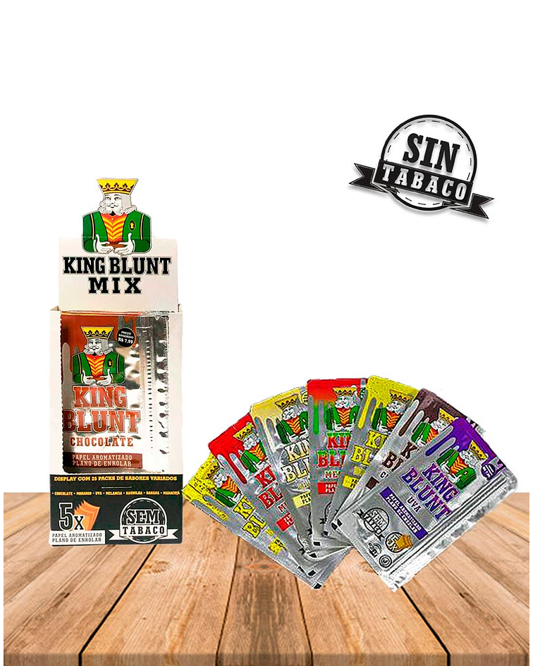 King Blunt X5 trae cinco ejemplares de una fina envoltura de exquisito papel aromatizado. La hoja es utilizada para envolver el cigarro, Papel marrón de color Natural sin aditivos y libre de tabaco, que no ha sido tratado con blanqueadores, con alta resistencia a