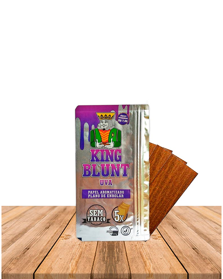 King Blunt X5 trae cinco ejemplares de una fina envoltura de exquisito papel aromatizado. La hoja es utilizada para envolver el cigarro, Papel marrón de color Natural sin aditivos y libre de tabaco, que no ha sido tratado con blanqueadores, con alta resistencia a