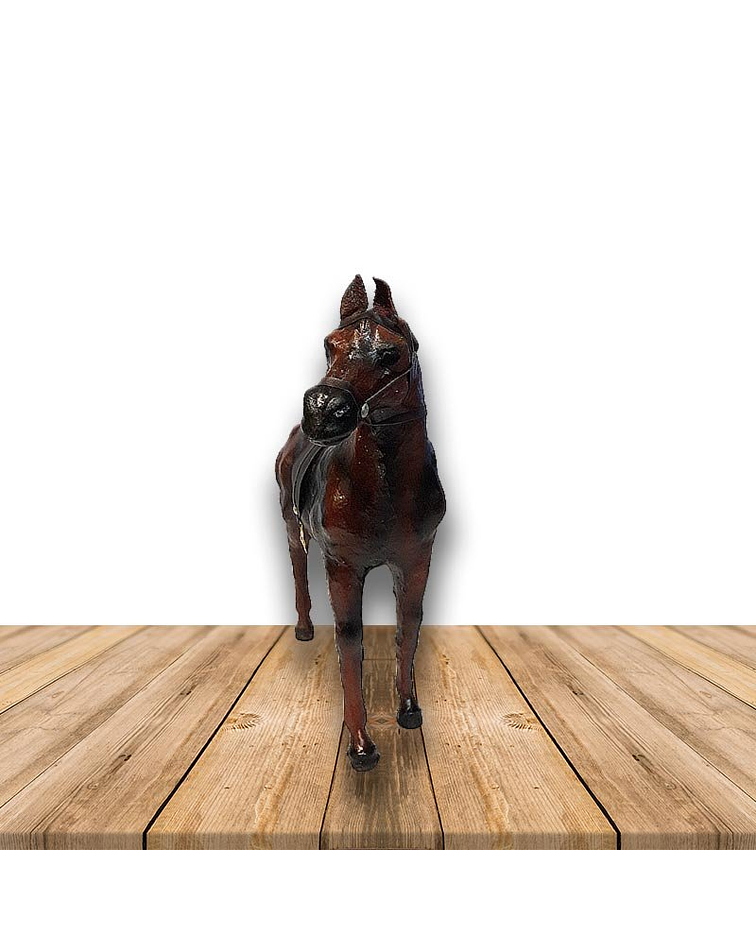 Caballo Marchando de Cuero 12", consta de 1 piezas de diseño realista con rasgos marcados de este noble animal en color Marrón Oscuro elaborados en cuero y detalles. Ideal para decorar el living.