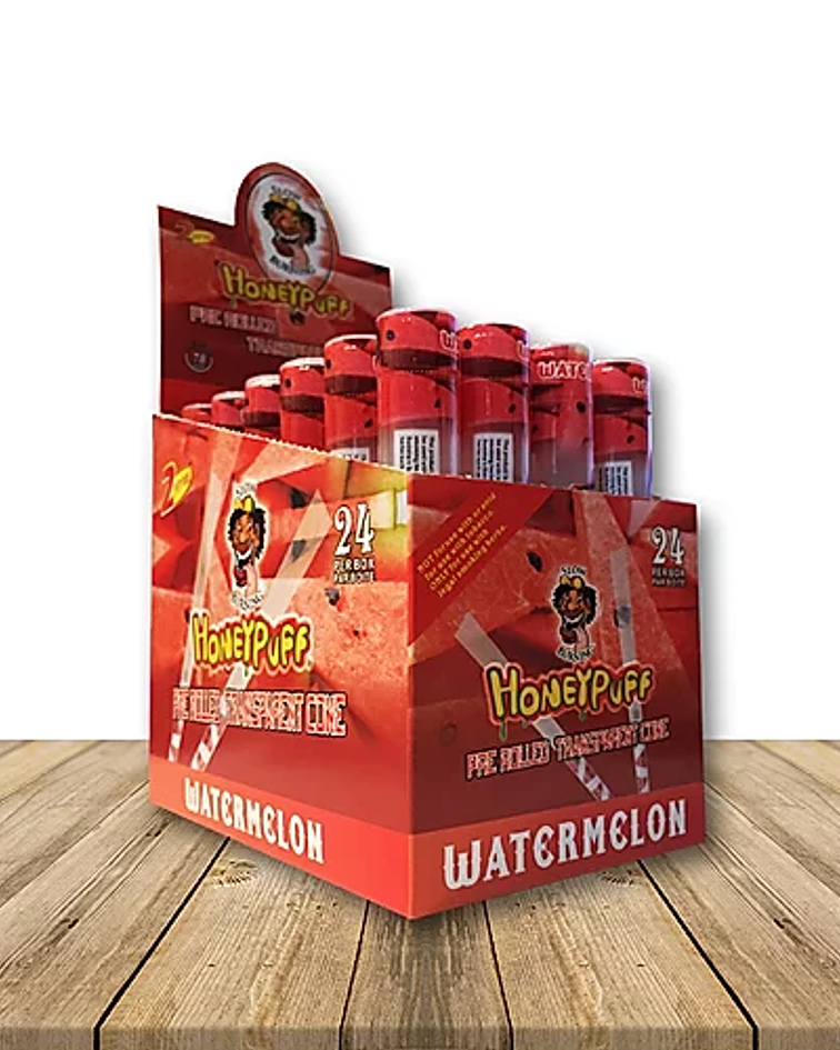 Cyclones Honeypuff de celulosa sabor Watermelon, una alternativa atractiva a la hora de fumar vienen dos unidades por tubo herméticamente cerrados para preservar el sabor del producto.