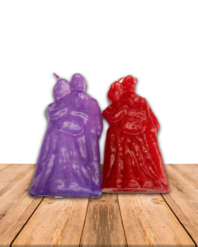 Utilidad de vela pareja de novios. Representa la unión de la pareja en lo espiritual, en la paz y la armonía. Invoca el amor y une sexualmente a la pareja.