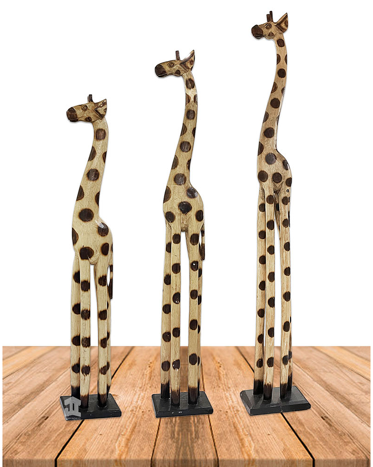 Set de 3 Jirafas de Color , consta de 3 piezas de diseño realista con rasgos marcados de este noble animal en colores Beige, elaborados en Madera y detalles.