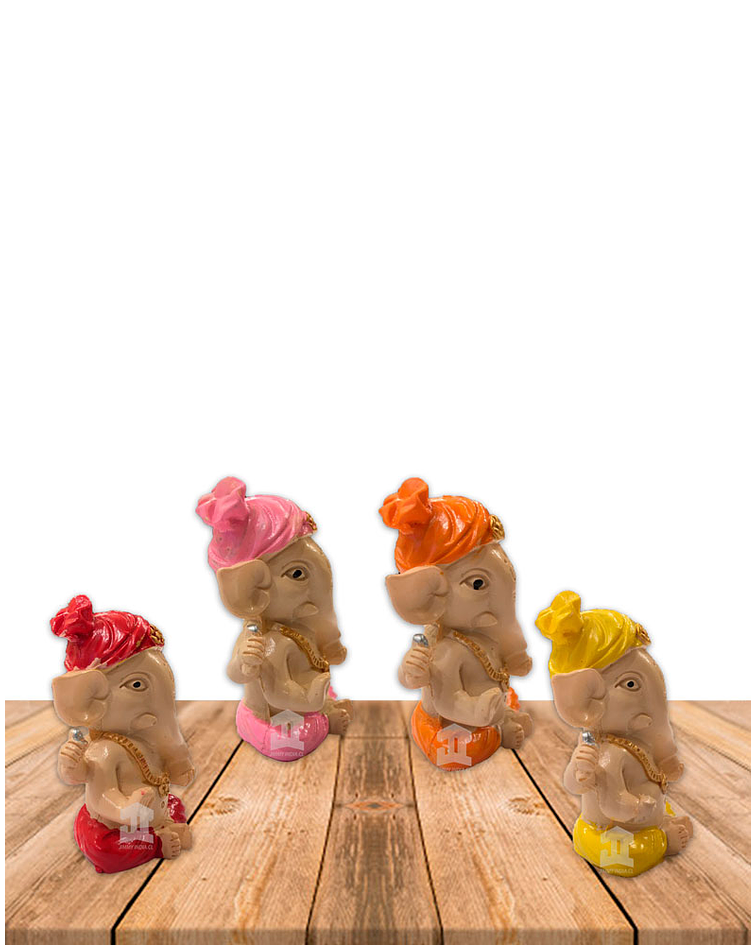 Set de Dios Ganesh en Poliresina pequeña 2,9", consta de 1 piezas de diseño en poliresina con rasgos; los detalles marcados del dios Ganesh en cuatro colores.