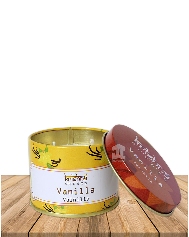 Velas Aromáticas Lata (Mecha doble) Krishna para aromaterapia traídas directamente desde la India, con aromas naturales, Duraderos y agradables e ideales para aromatizar tu hogar.
